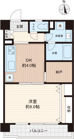 南向き6階・1DK+収納!前面棟無し眺望良好!